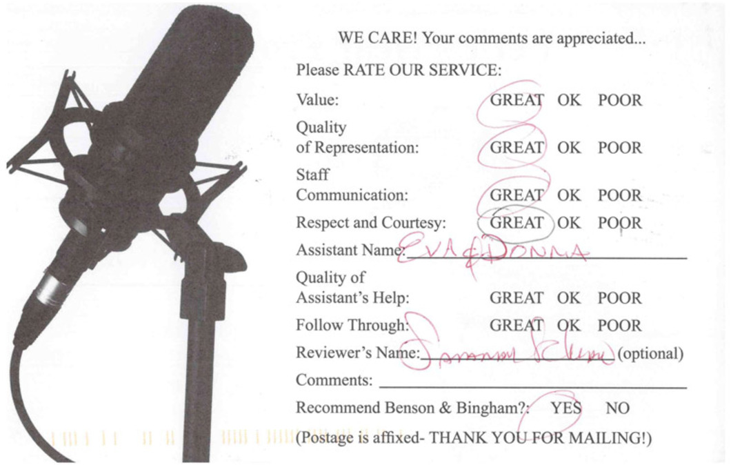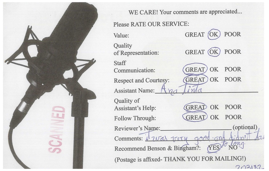 Recommend Benson & Bingham? YES.